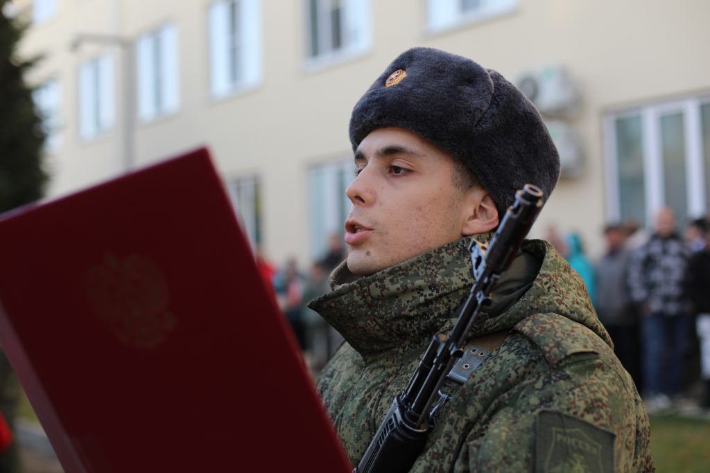 Более 60 военнослужащих молодого пополнения перед строем своих подразделений произнесли клятву на верность Российской Федерации, ее Конституции и законам.