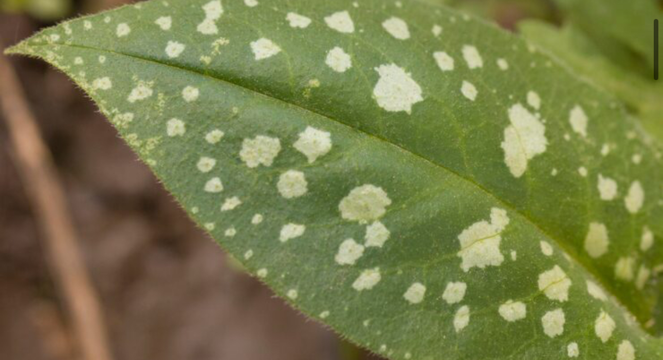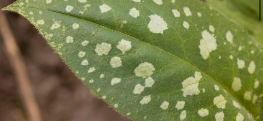 — Появление белых пятен на листьях, постепенно переходящее в сплошной налет.