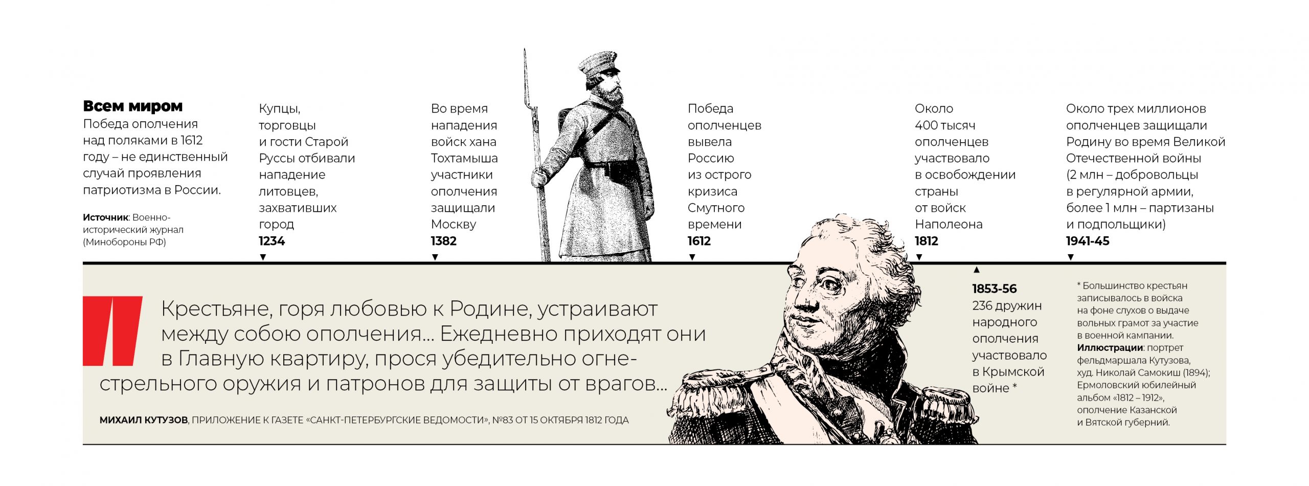 В 1612 году 22 октября (4 ноября) отрядами Второго ополчения после штурма был освобожден от польских отрядов Китай-город, второе по значимости после Кремля укрепление столицы. Через несколько дней, 26 октября (6 ноября), польский гарнизон капитулировал и в Кремле. Данное событие знаменовало собой окончание польской оккупации Москвы. С ним неразрывно связан неоценимый подвиг двух героев — Кузьмы Минина и Дмитрия Пожарского. Минин и Пожарский – организаторы Второго ополчения, принесшего освобождение русским территориям.