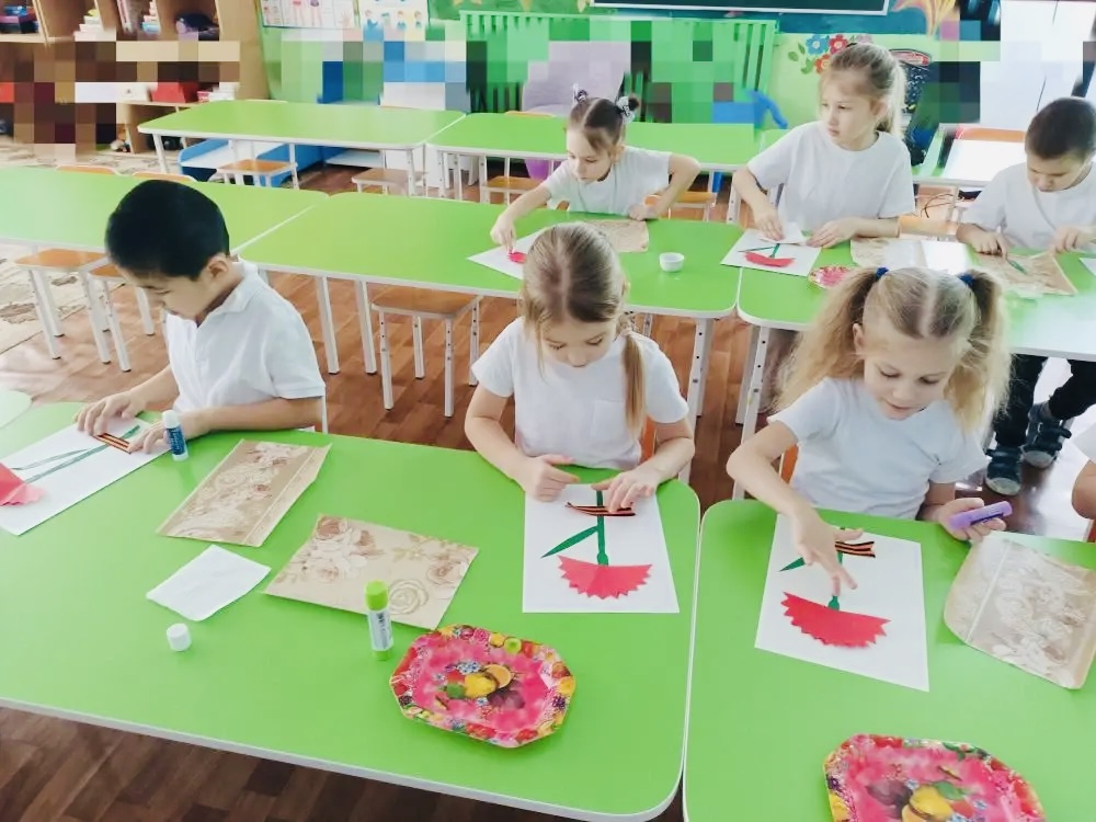 Воспитатель Е.В. Серебренникова объяснила детям, что веточка гвоздики, возложенная к памятнику, выражает глубокую скорбь и благодарность погибшим воинам в тяжёлых боях за мирное небо над головой. В заключение воспитанники изобразили гвоздику как символ мужества и героизма солдат.